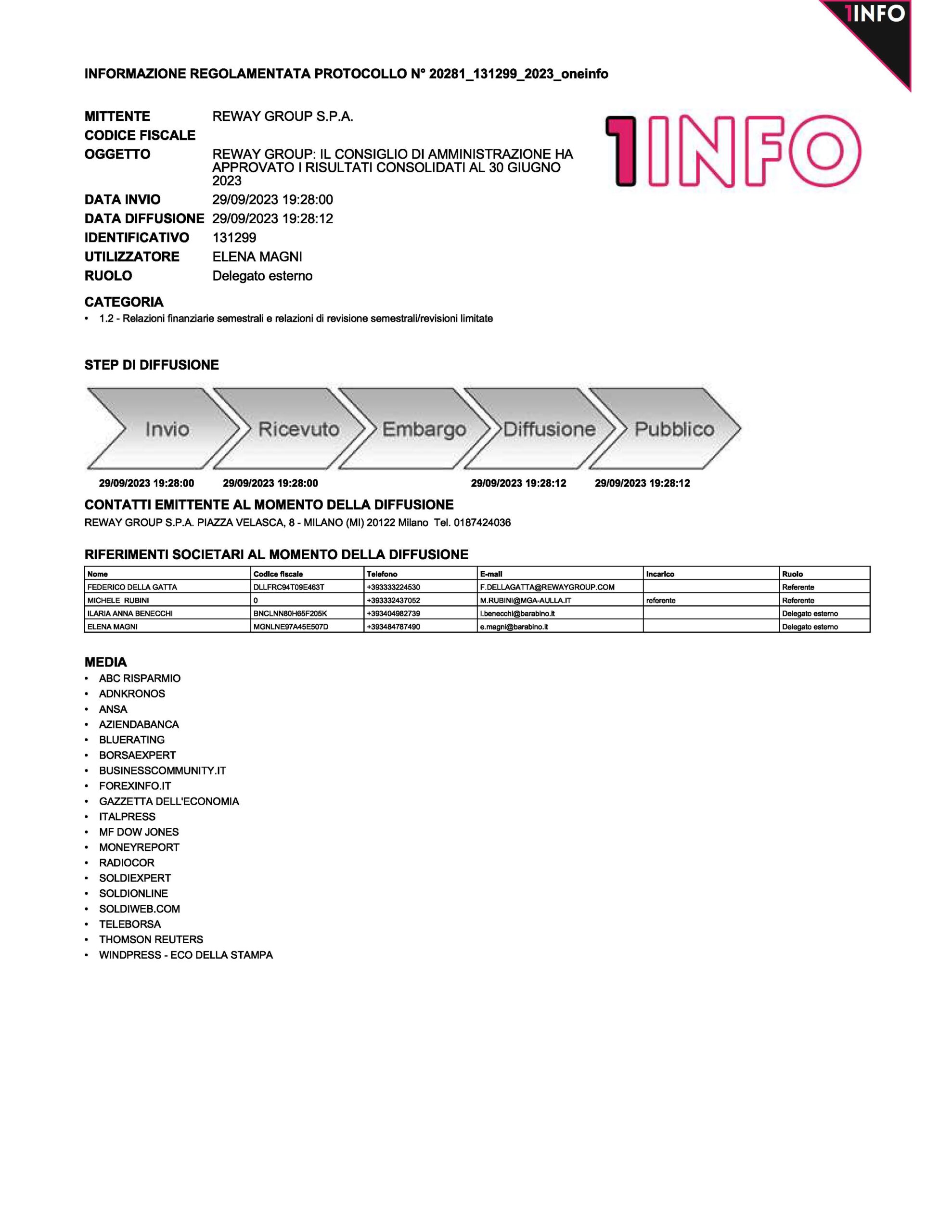 Il Consiglio di Amministrazione ha approvato i risultati consolidati al 30 Giugno 2023COMUNICATO STAMPAREWAY GROUP: IL CONSIGLIO DI AMMINISTRAZIONE HA APPROVATO I RISULTATI CONSOLIDATI AL 30 GIUGNO 2023 admin2024-05-29T11:16:05+02:00