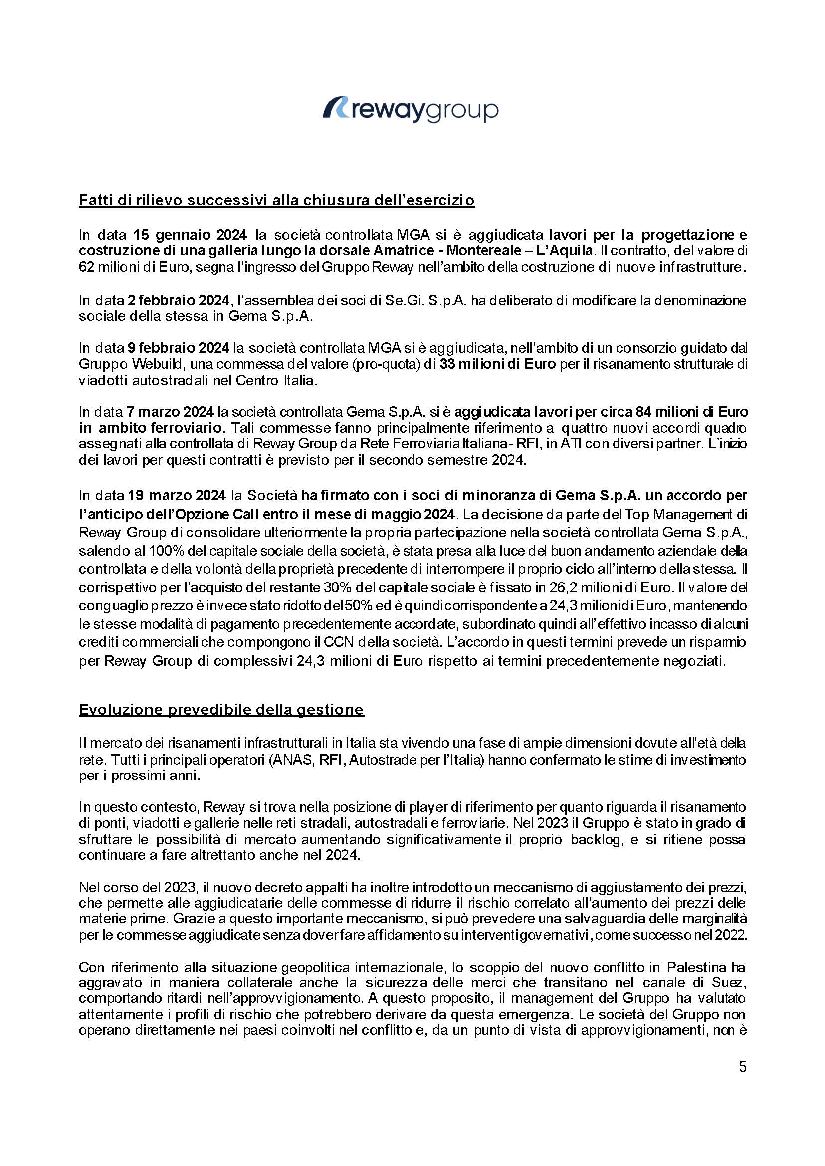 Il consiglio di Amministrazione ha approvato il progetto di Bilancio d’Esercizio, il Bilancio Consolidato e i Prospetti Consolidati pro-forma al 31 Dicembre 2023